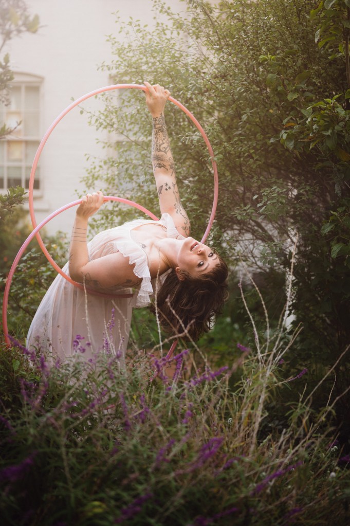 Chloe Somers Walier is a multifaceted international award winning artist specializing in hula hoops, aerial arts, and bottle walking. Not only is she a headlining circus artist, she also hosts shows and offers a 20 minute solo variety show. You’ve seen her on The Late Show with James Corden, Virgin Voyages, and has been touring full time with The 7 Fingers for the last 6 years. She spent 3 summers writing and creating circus acts for Circus Smirkus, installed multiple casts of Duel Reality for The 7 Fingers and helps with act development with aspiring and professional artists. In her free time Chloe is knitting and building a house with her own hands in Vermont.